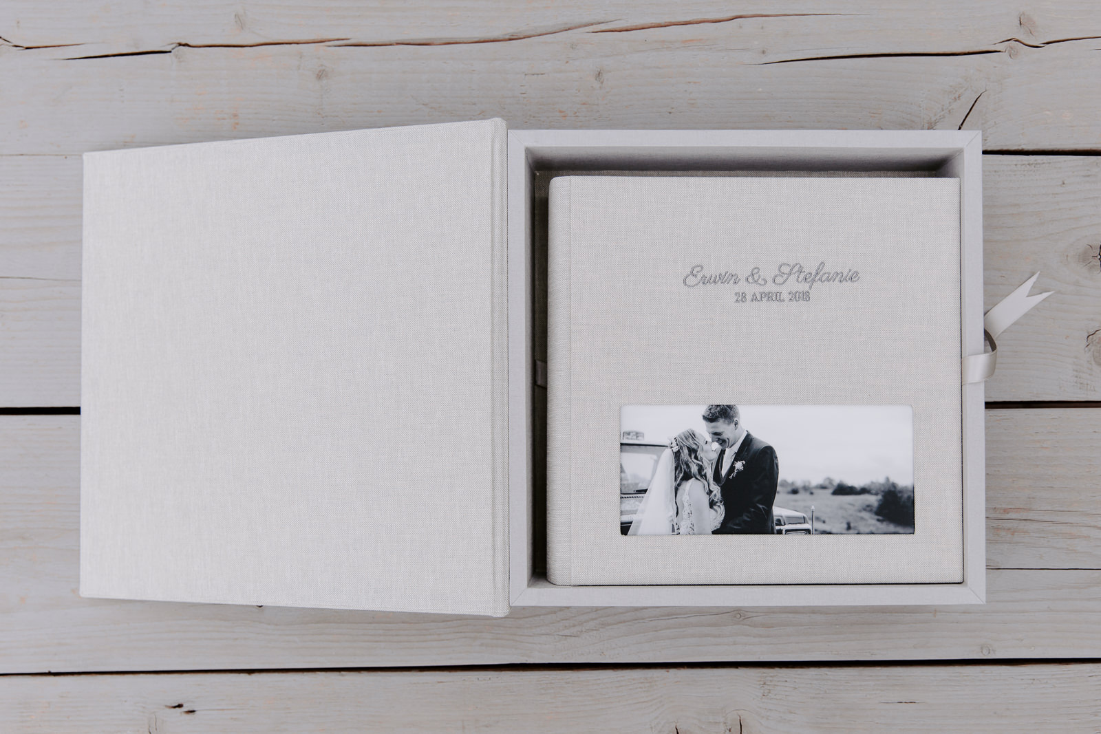 Om er zeker van te zijn dat jullie album lang mooi blijft, kun je er ook voor kiezen om een mooie bewaarbox bij te pakken. De Olympic opbergbox is een box uit één geheel met een deksel die je kunt openklappen en een lint om het album uit de box te tillen.