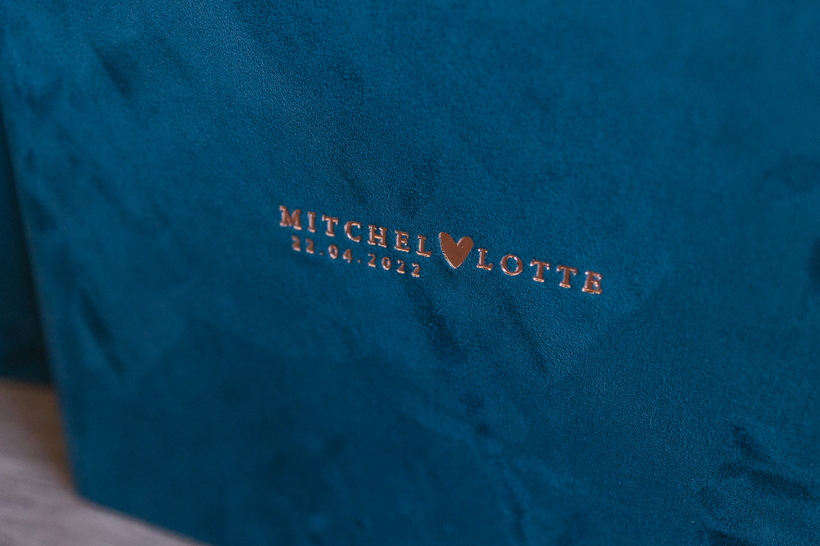 De tekst wordt samen met een glimmende folie in de cover gedrukt. Meerprijs hiervan is +€75